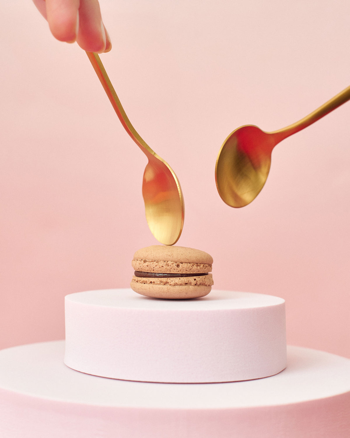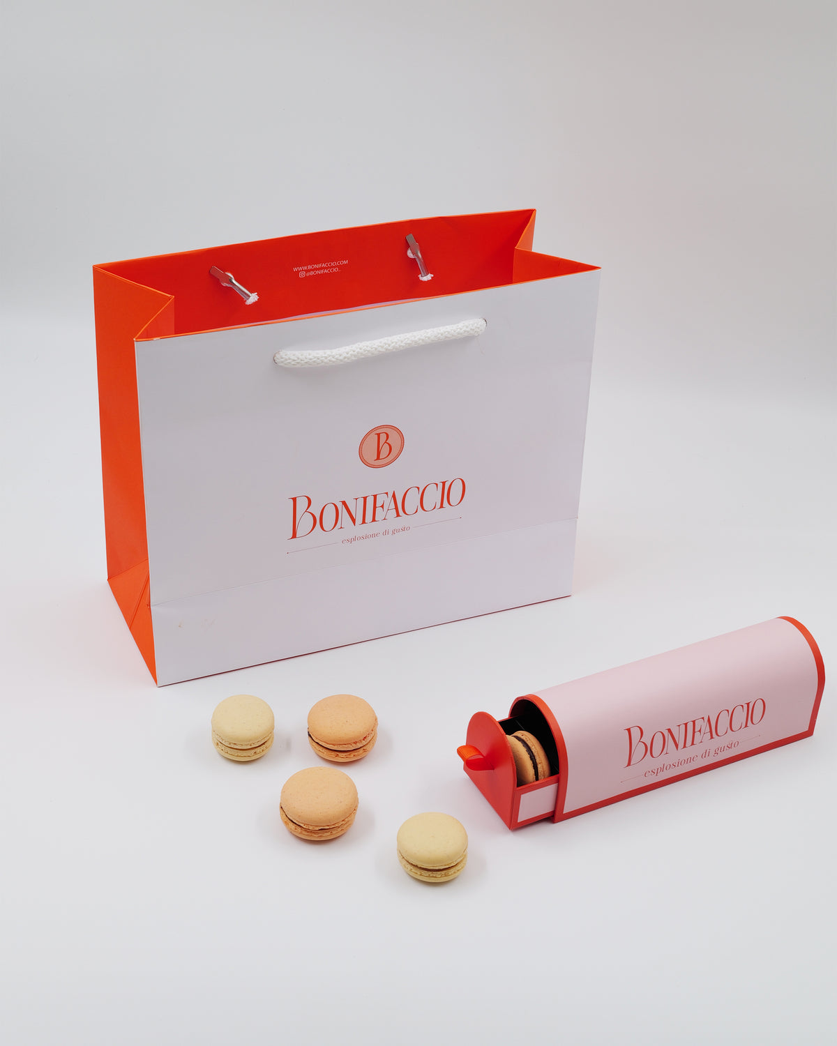 Caja de 12 macarons variados: chocolate, chocolate con naranja, pistacho, limón, caramelo con sal y frambuesa.